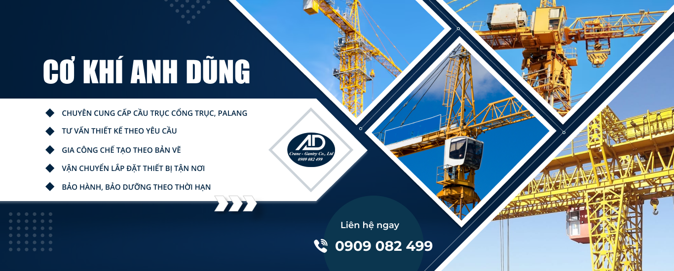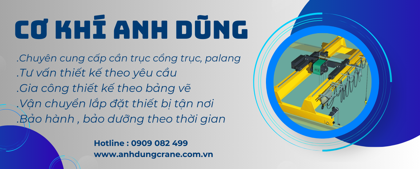 Công Ty TNHH Thương Mại Sản Xuất Cầu Trục - Cổng Trục & Dịch Vụ Cơ Khí Anh Dũng tự hào là đơn vị hàng đầu trong lĩnh vực sản xuất và cung cấp các loại cầu trục, cổng trục cùng các dịch vụ cơ khí chất lượng cao tại Việt Nam. Chúng tôi chuyên thiết kế, chế tạo và lắp đặt các hệ thống cầu trục và cổng trục, phục vụ nhu cầu nâng hạ và di chuyển hàng hóa trong các ngành công nghiệp, xây dựng và logistics.